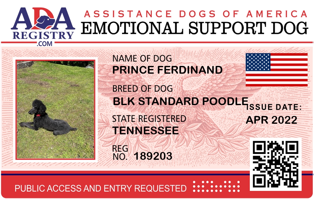 Emotional Support Dog Registration for Prince Ferdinand