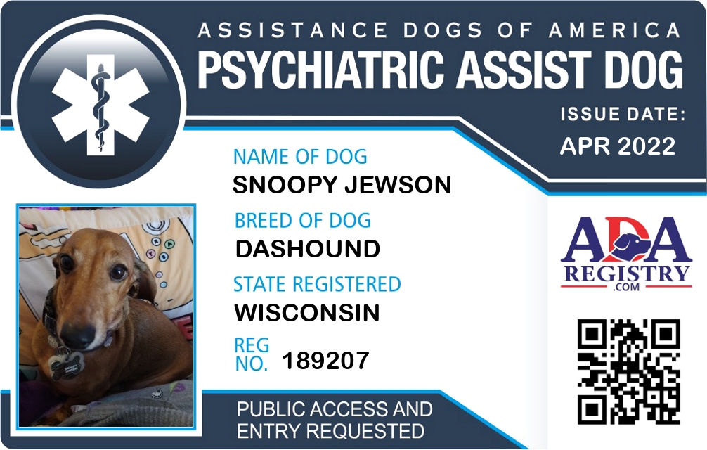 Psychiatric Service Dog Registration for Snoopy Jewson