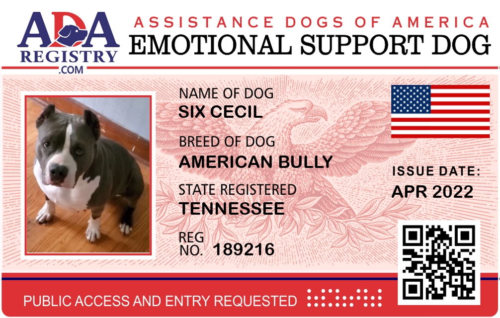 Emotional Support Dog Registration for Six Cecil