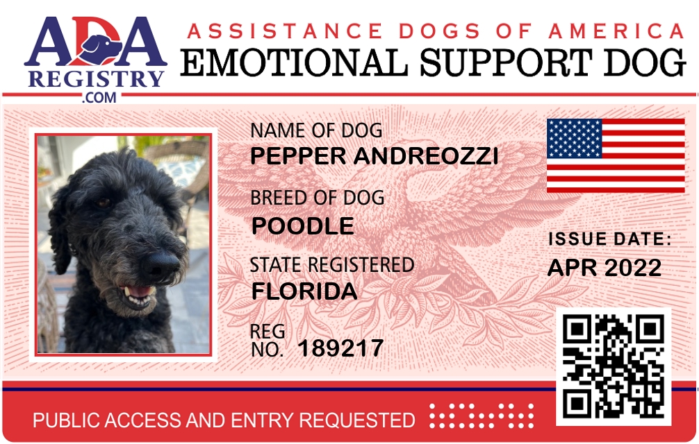 Emotional Support Dog Registration for Pepper Andreozzi