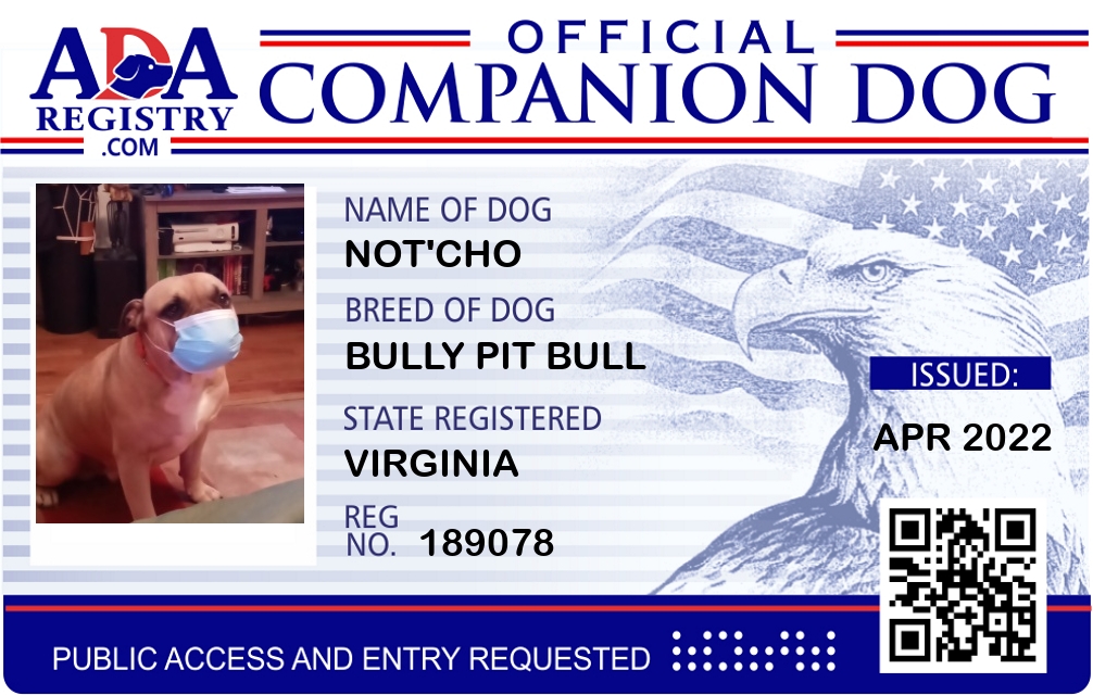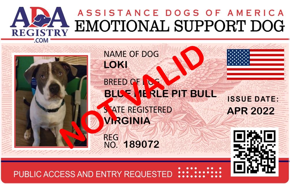 Emotional Support Dog Registration for Maggie Butterbaugh