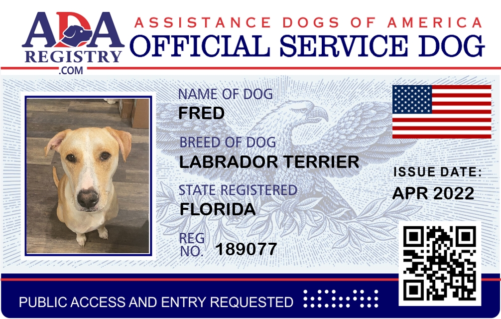 Service Dog Registration for Fred