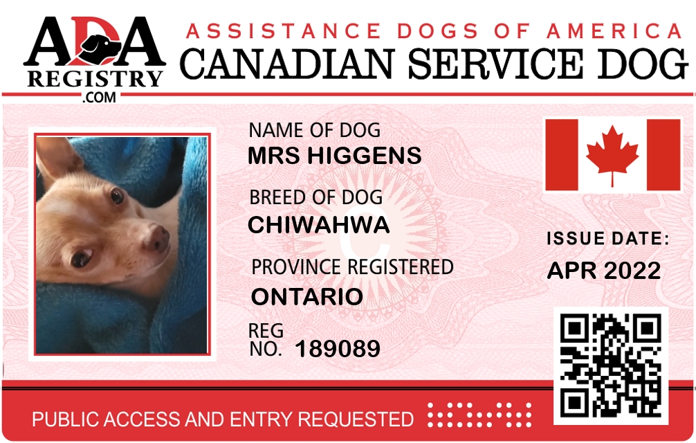 Service Dog Registration for Mrs higgens
