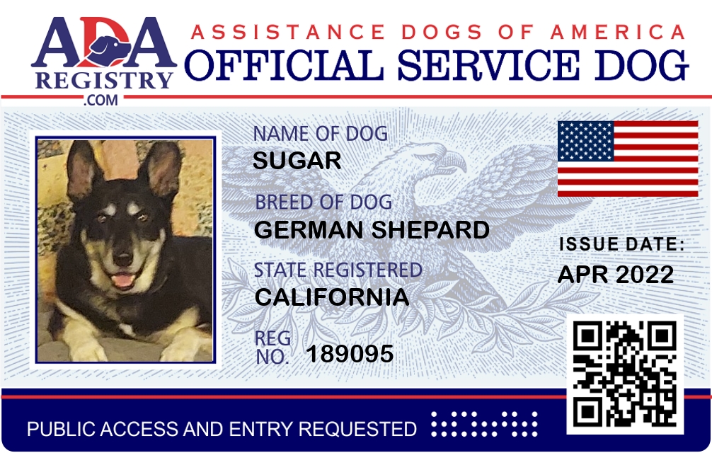 Service Dog Registration for sugar