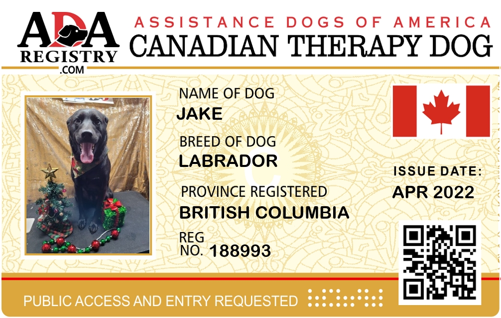 Therapy Dog Registration for Jake