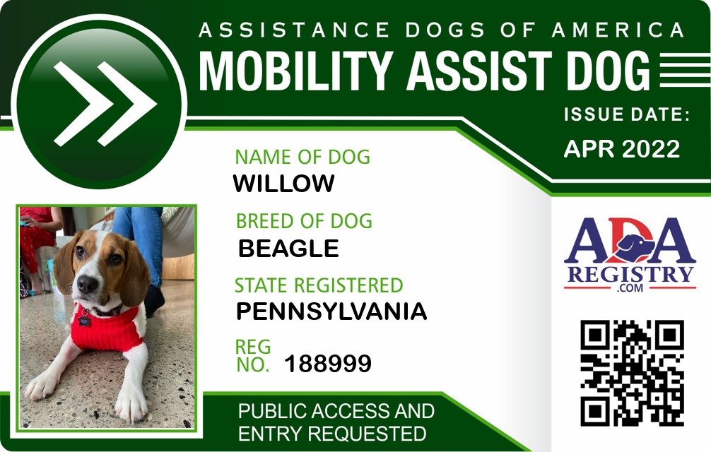 Brace / Mobility Assistance Dog Registration for Willow