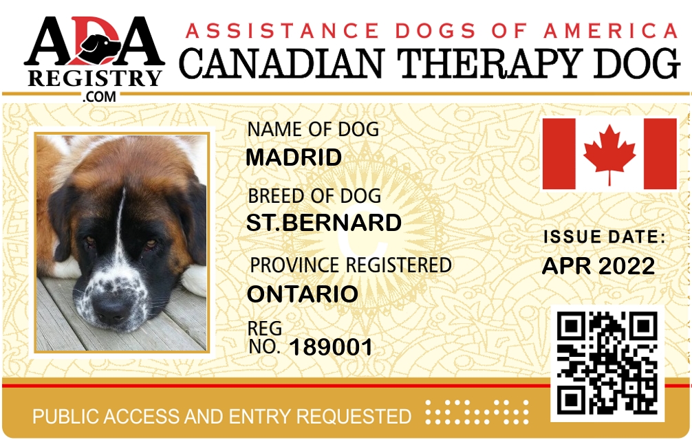 Therapy Dog Registration for Madrid