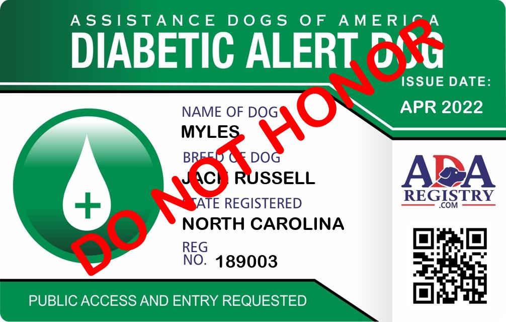 Registration Type: Diabetic Alert Dog Registration