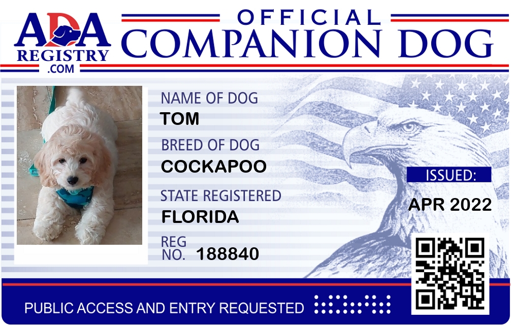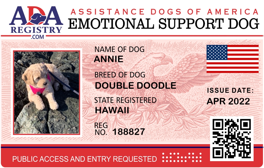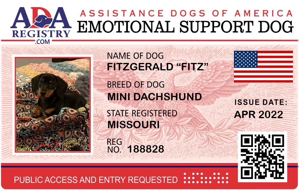 Emotional Support Dog Registration for Fitzgerald “Fitz”