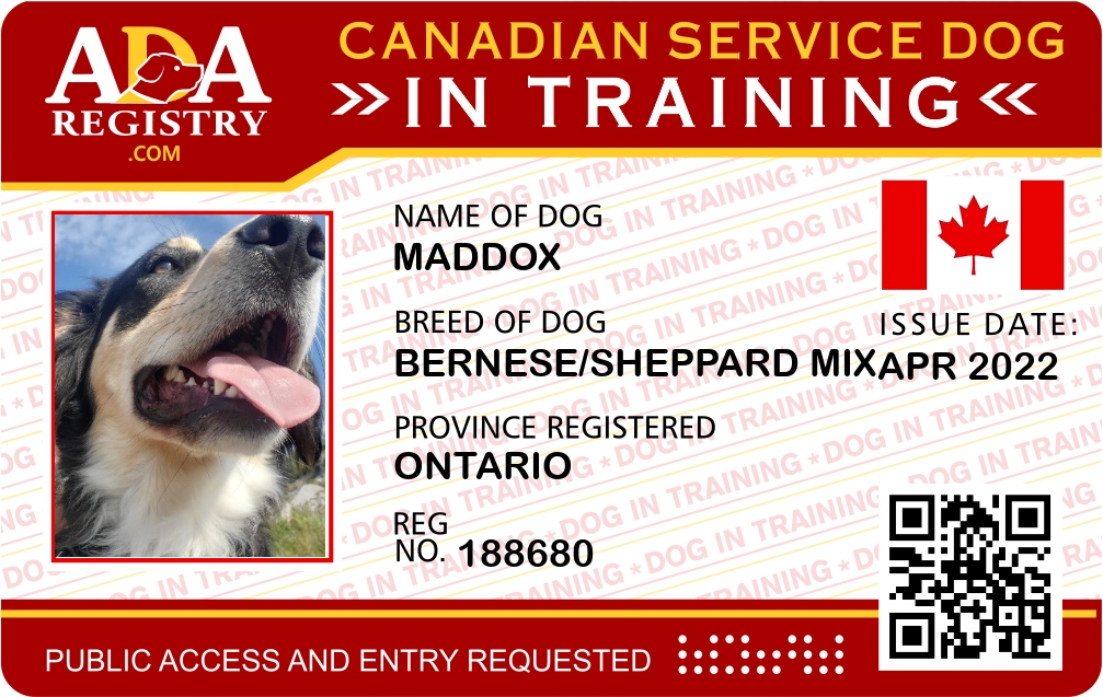 Service Dog In Training Registration for Maddox