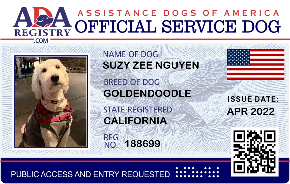 Service Dog Registration for Suzy Zee Nguyen