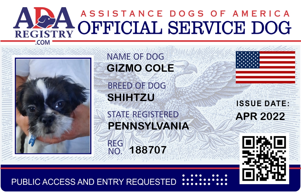 Service Dog Registration for gizmo cole