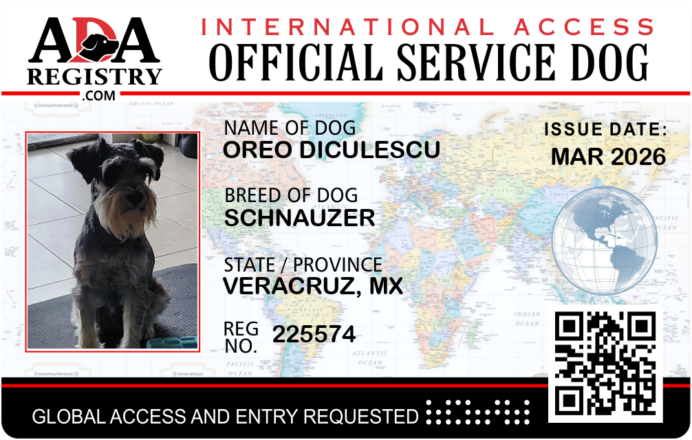 Service Dog Registration for Oreo Diculescu