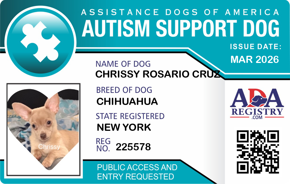 Autism Assistance Dog Registration for Chrissy Rosario Cruz