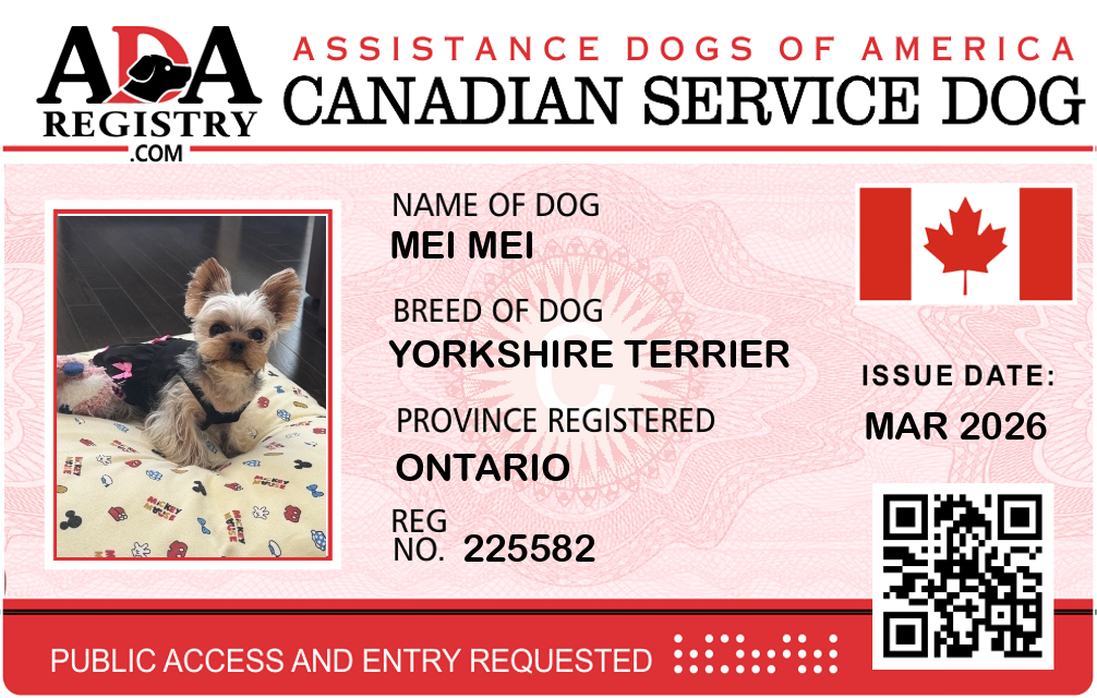Service Dog Registration for Mei Mei