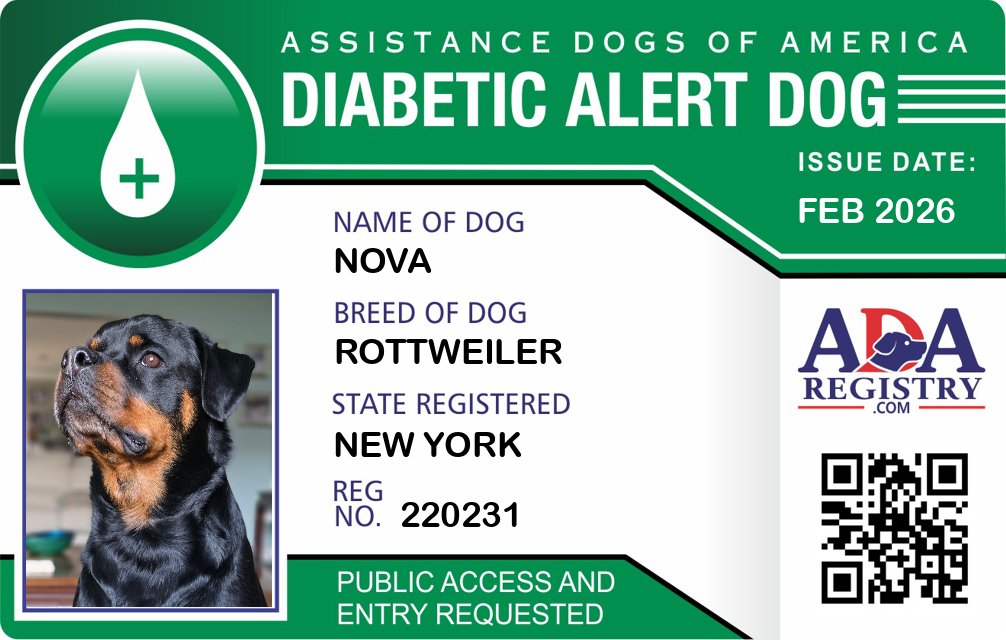Diabetic Alert Dog Registration for Nova