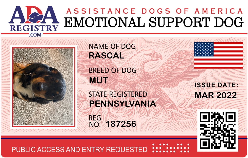Emotional Support Dog Registration for Rascal