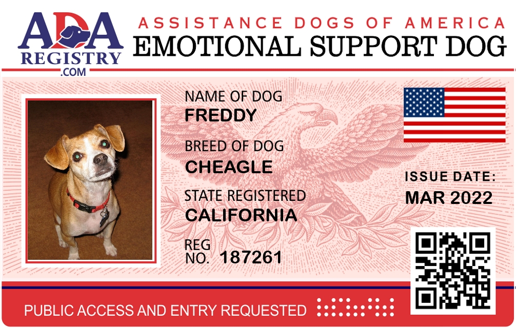Emotional Support Dog Registration for Freddy