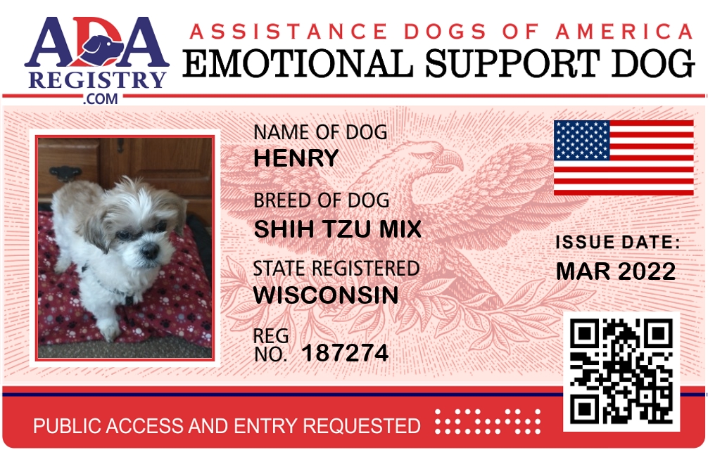 Emotional Support Dog Registration for Henry