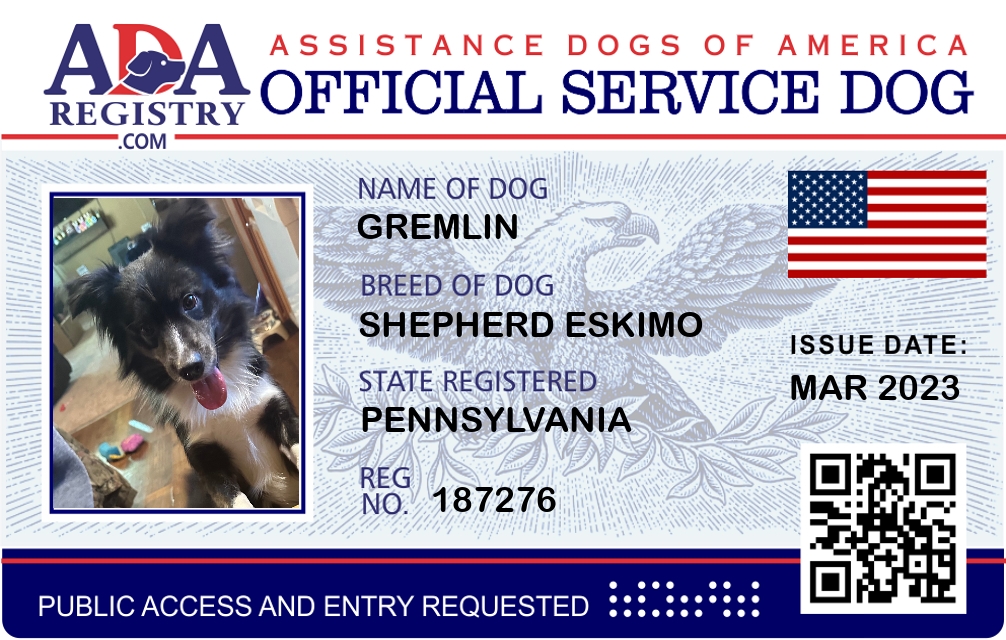Service Dog Registration for Gremlin