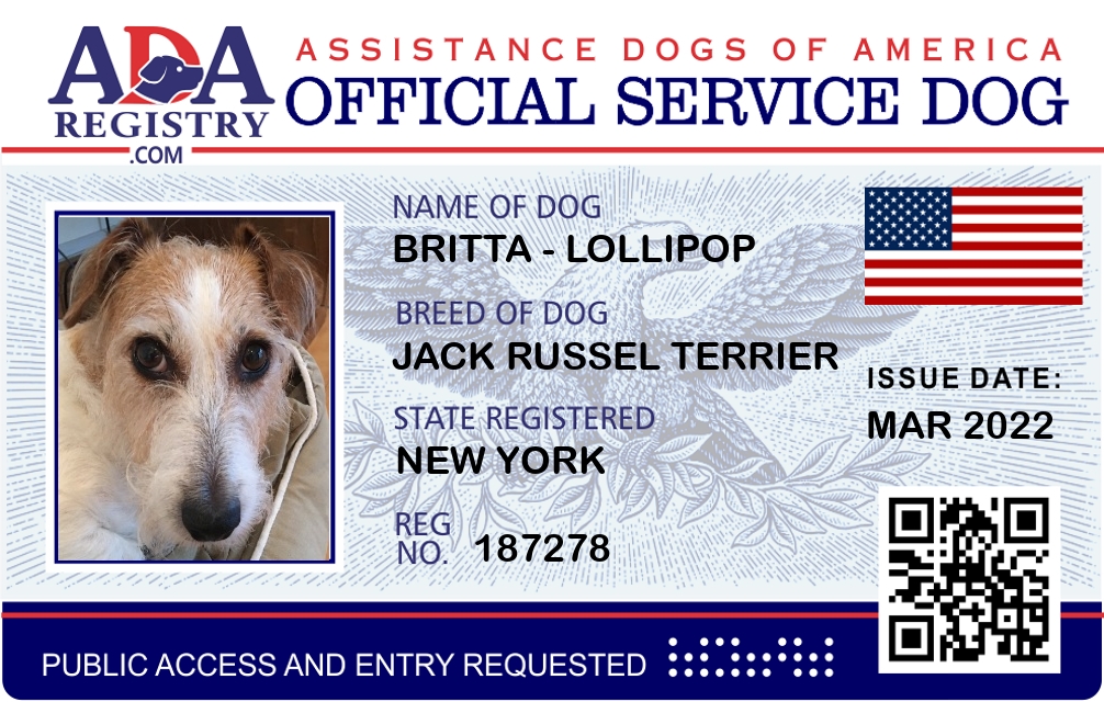 Service Dog Registration for BRITTA - LOLLIPOP