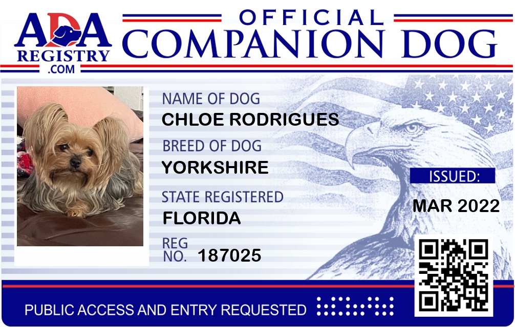 Companion Dog Registration for Chloe Rodrigues