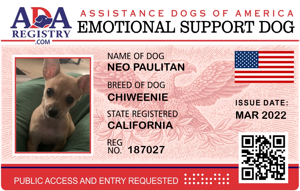 Emotional Support Dog Registration for Neo Paulitan