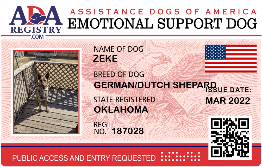 Emotional Support Dog Registration for Zeke
