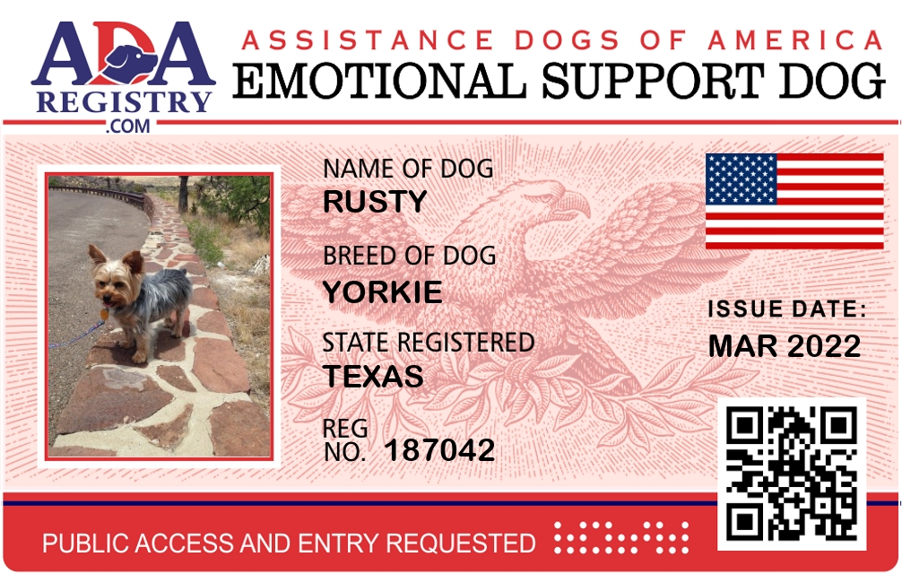 Emotional Support Dog Registration for Rusty