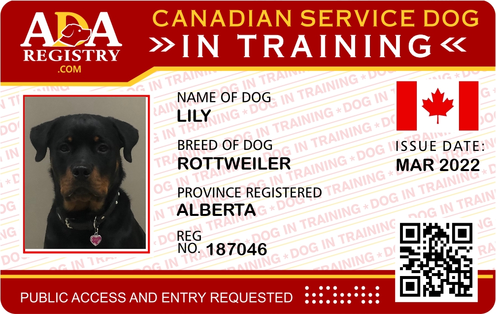 Service Dog In Training Registration for Lily