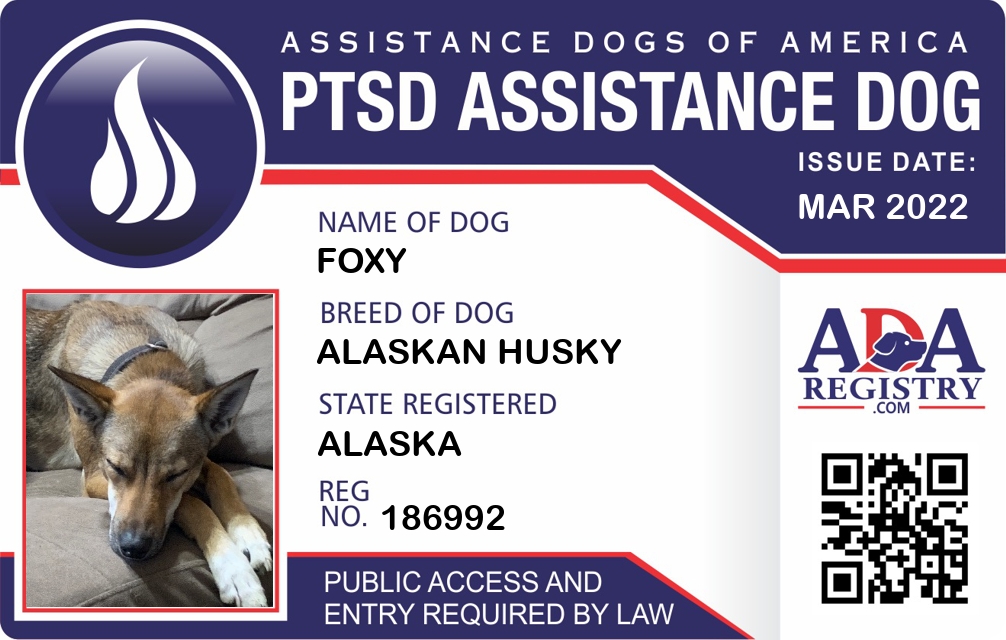 PTSD Assistance Dog Registration for Foxy