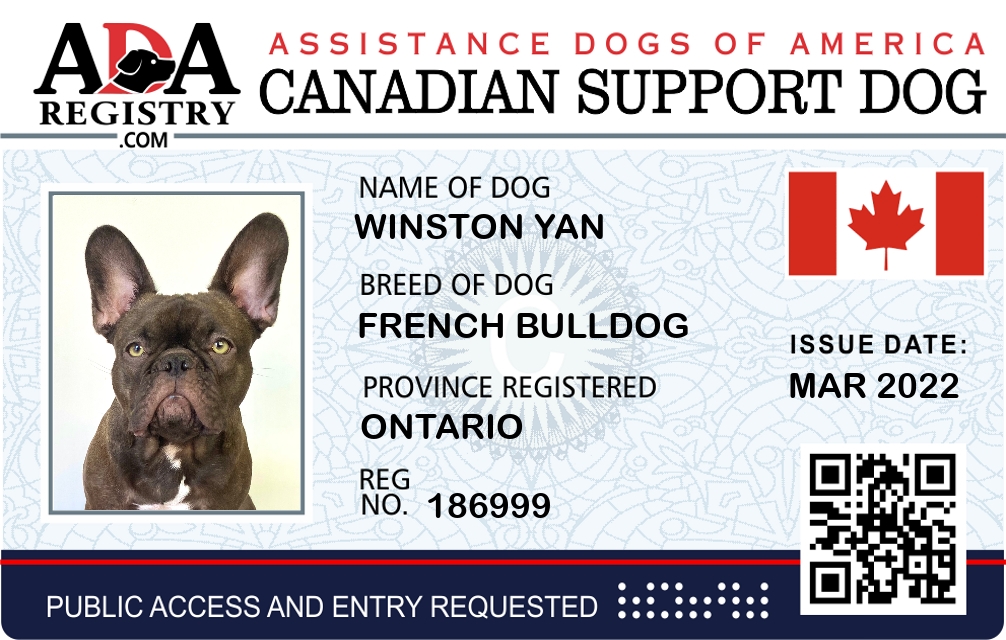 Emotional Support Dog Registration for Winston Yan