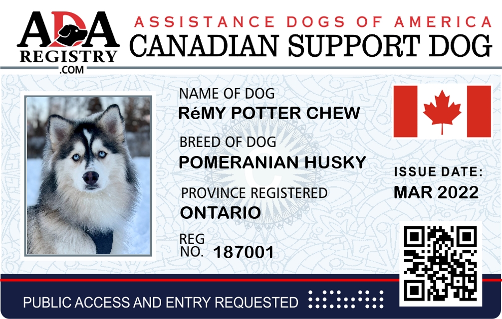 Emotional Support Dog Registration for Rémy Potter Chew