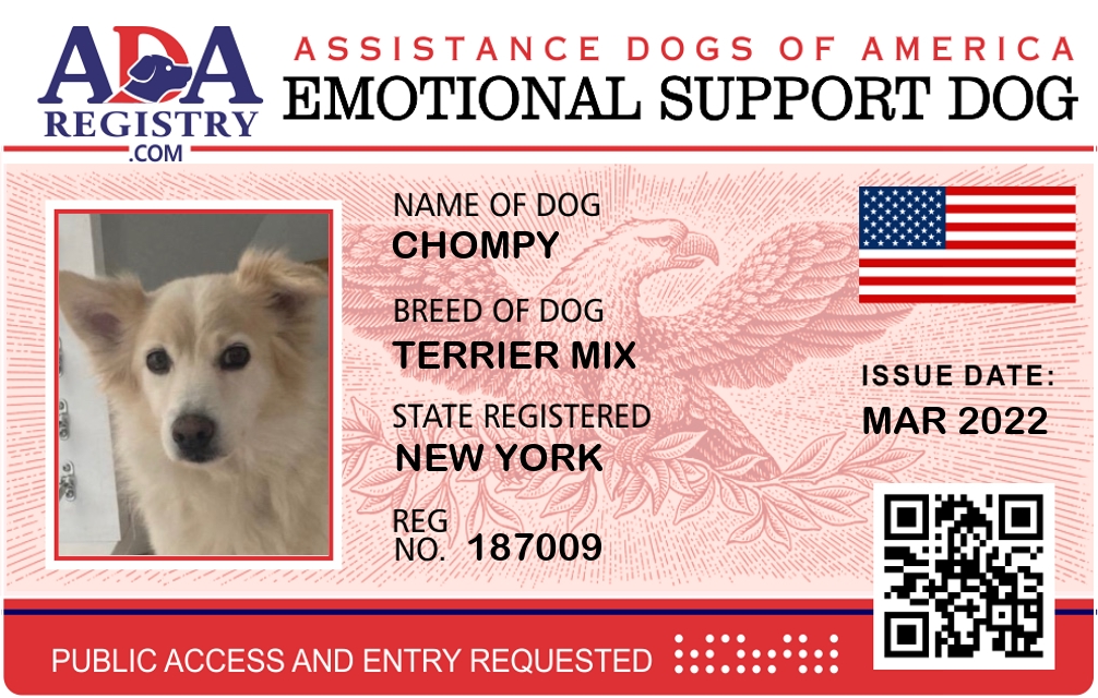 Emotional Support Dog Registration for Chompy