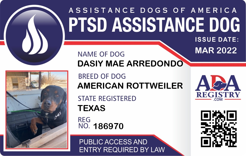PTSD Assistance Dog Registration for Dasiy Mae Arredondo