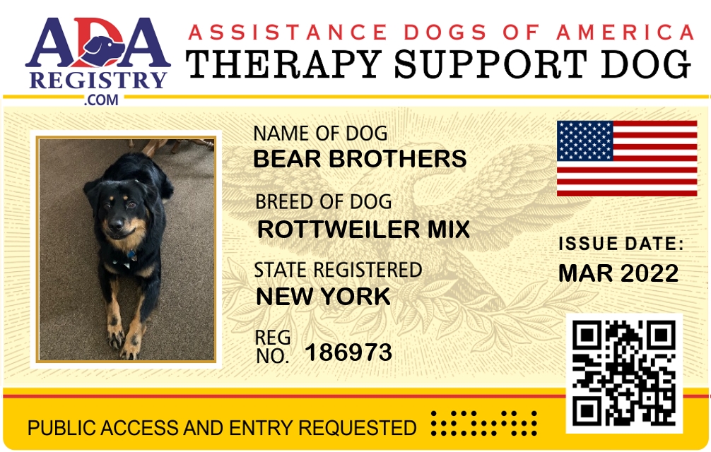 Therapy Dog Registration for Bear Brothers
