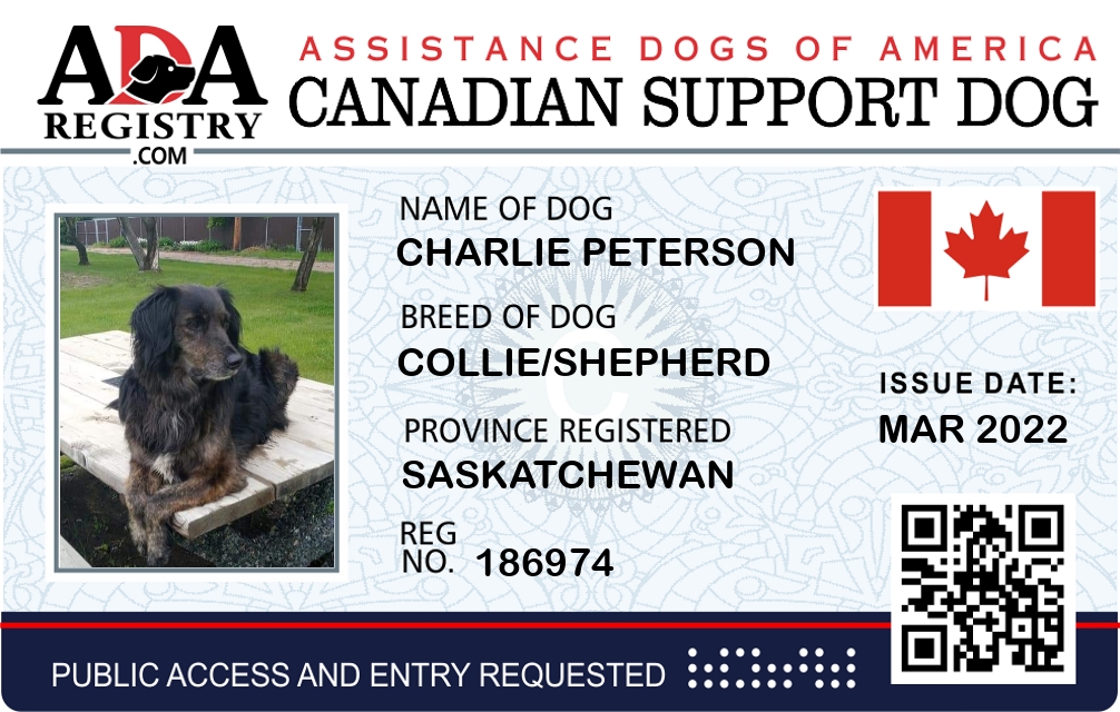 Emotional Support Dog Registration for Charlie Peterson
