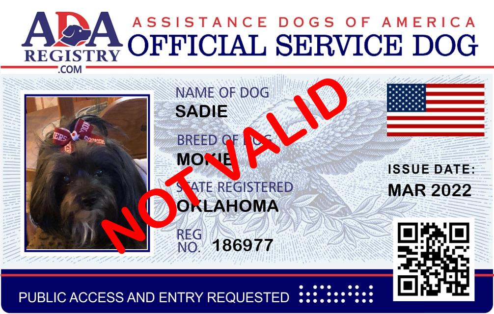 Service Dog Registration for Sadie
