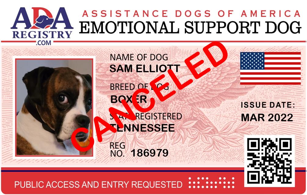 Emotional Support Dog Registration for Sam Elliott