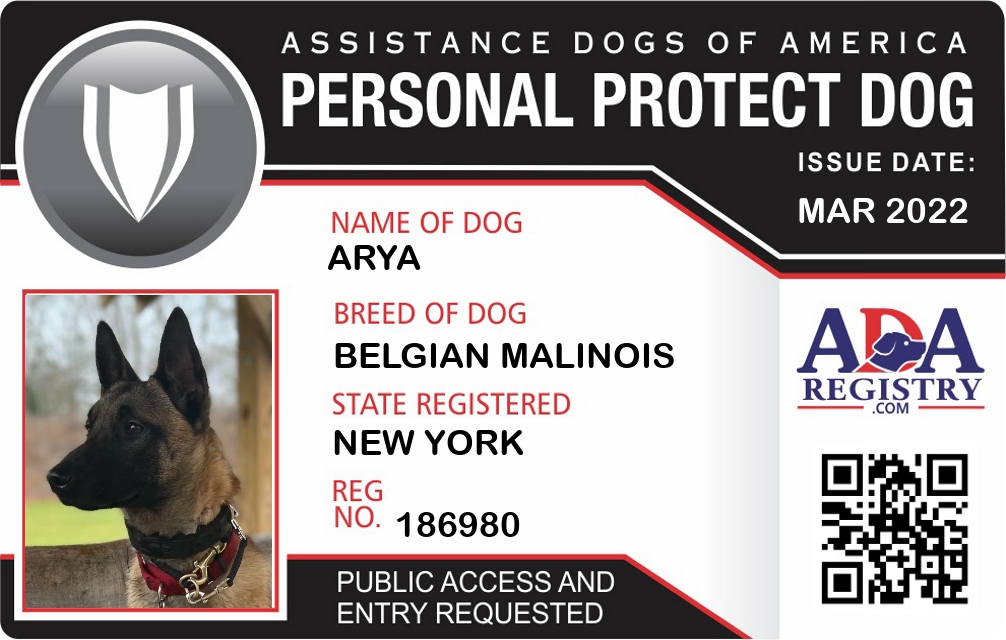 Personal Protection Dog Registration for Arya