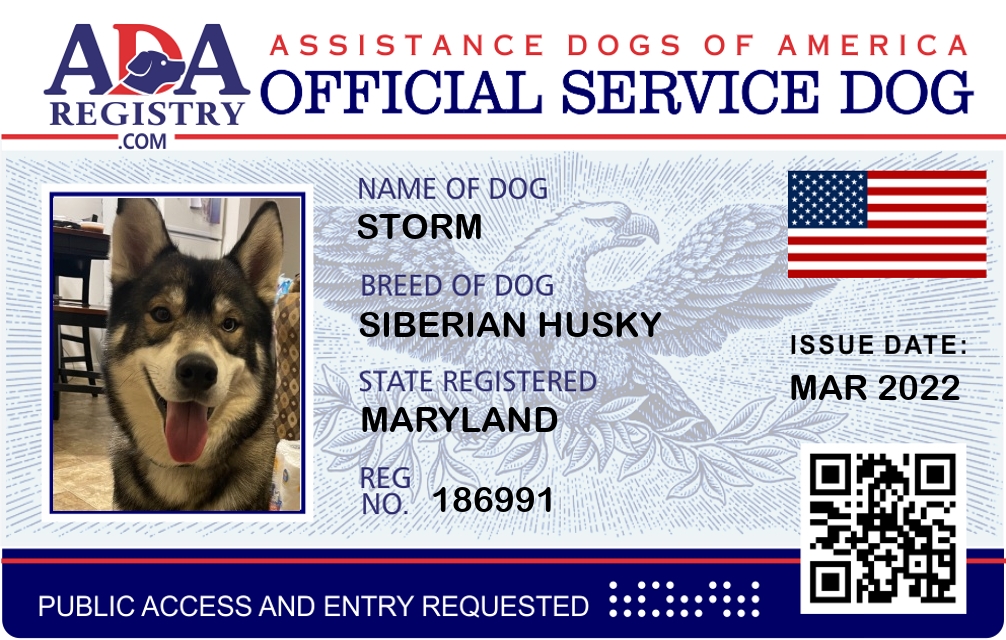 Service Dog Registration for Storm
