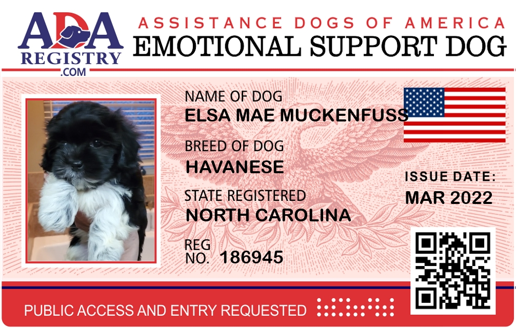 Emotional Support Dog Registration for Elsa Mae Muckenfuss