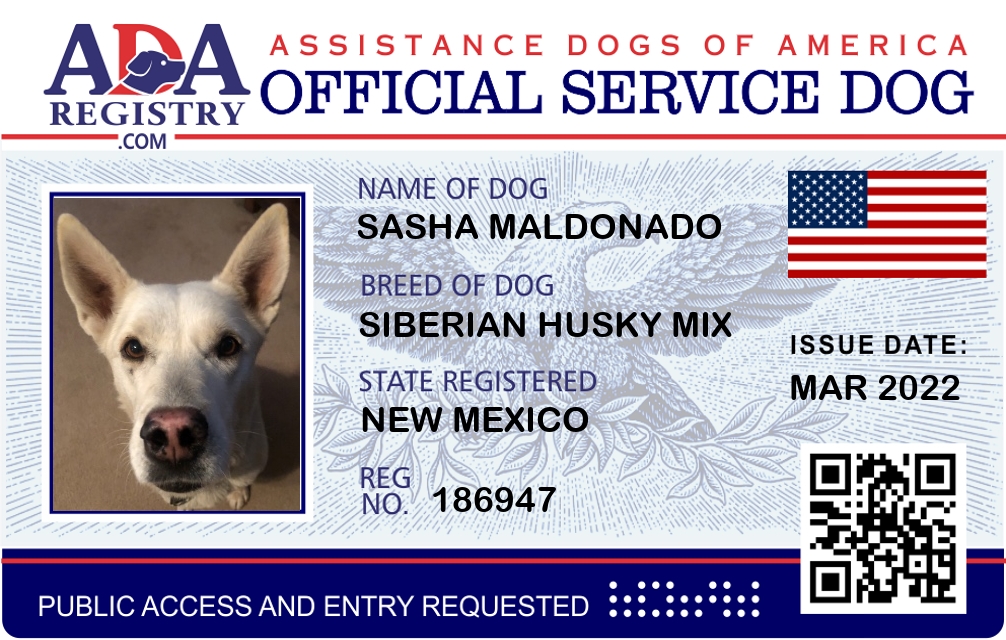 Service Dog Registration for SASHA MALDONADO