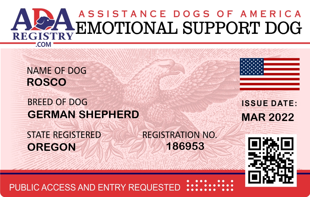 Emotional Support Dog Registration for Rosco