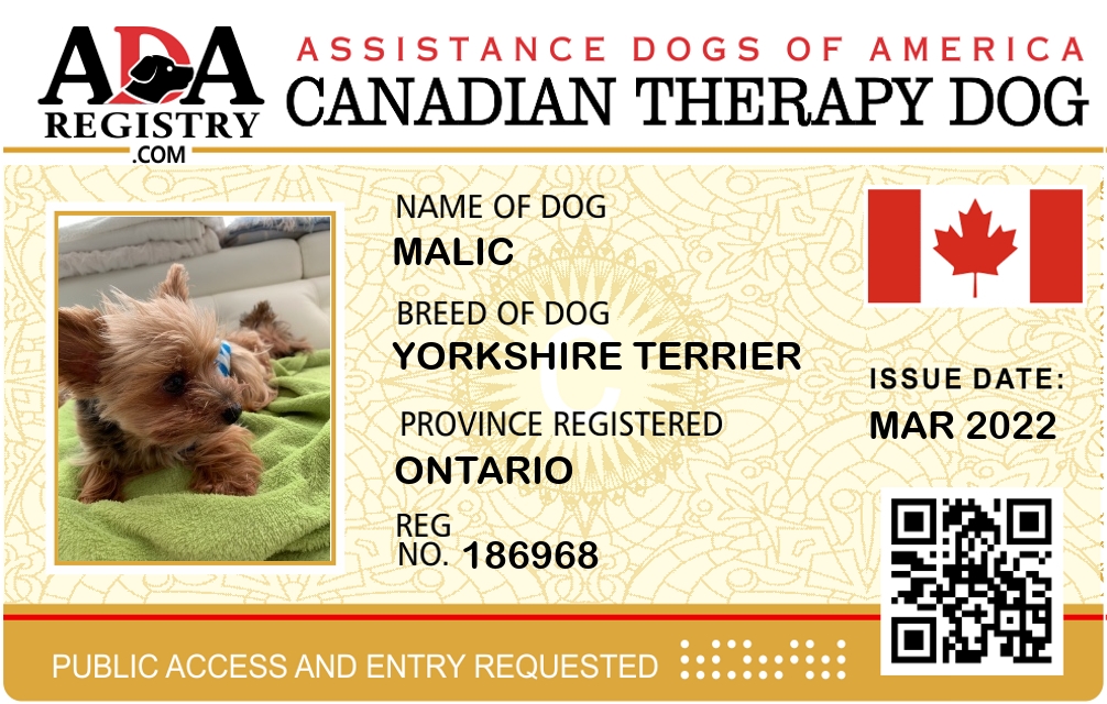Therapy Dog Registration for Malic
