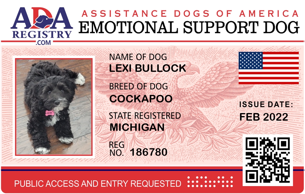 Emotional Support Dog Registration for Lexi Bullock