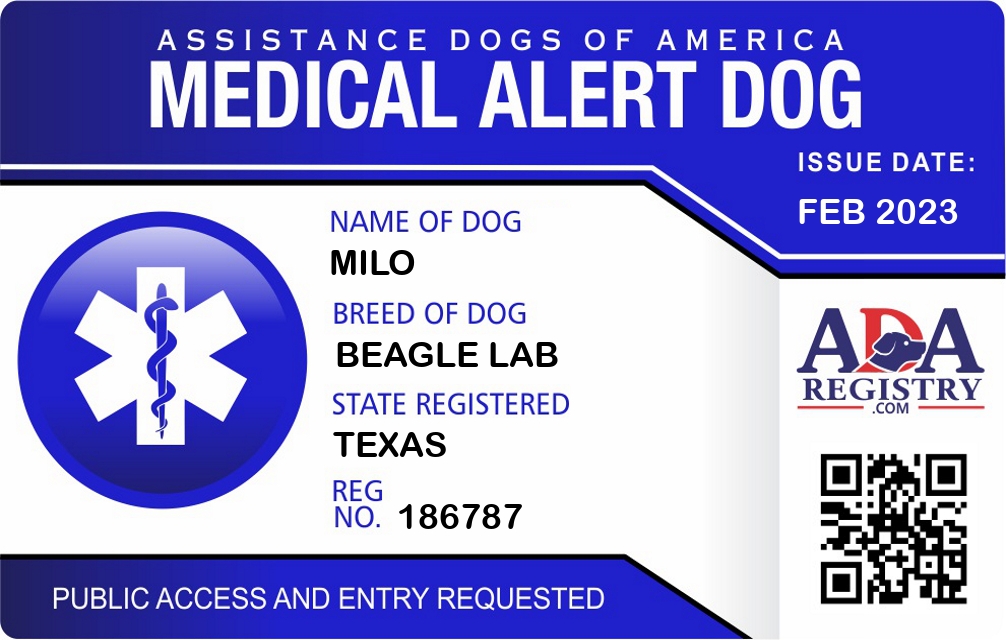 Medical Alert Dog Registration for Milo