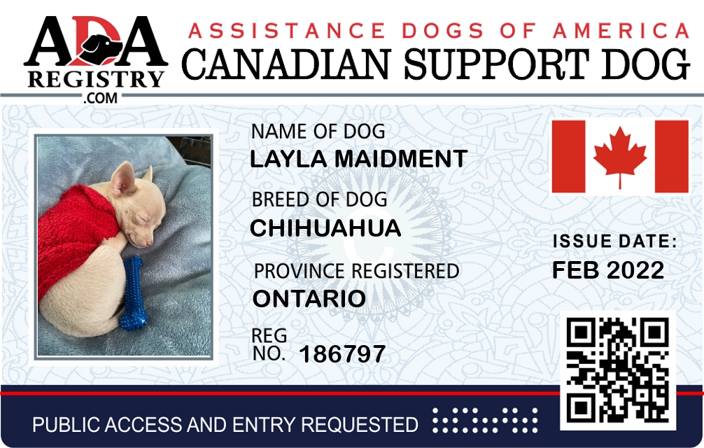 Emotional Support Dog Registration for Layla Maidment