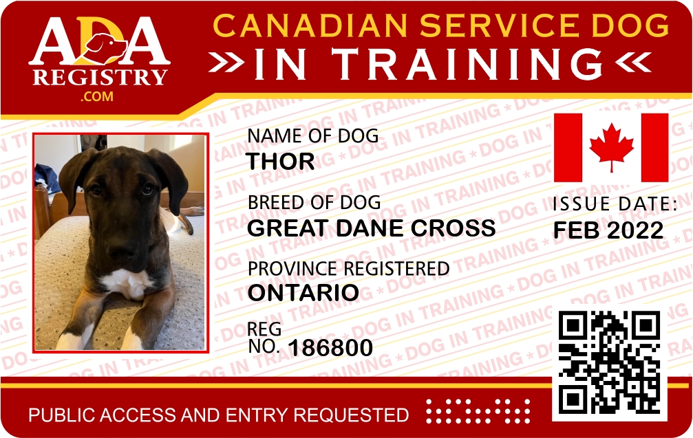 Service Dog In Training Registration for Thor