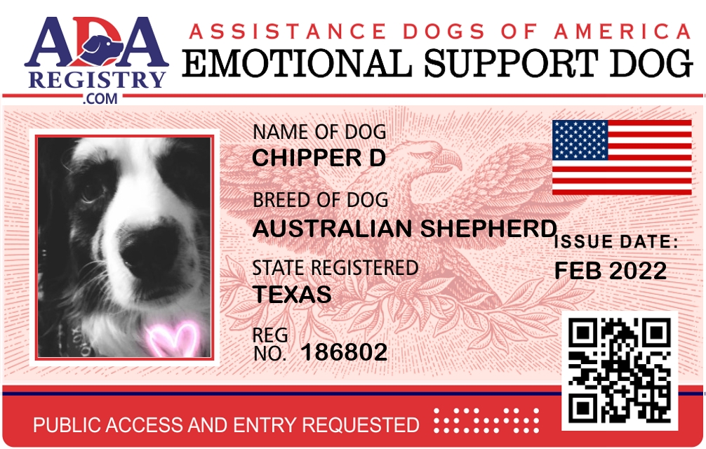Emotional Support Dog Registration for Chipper D